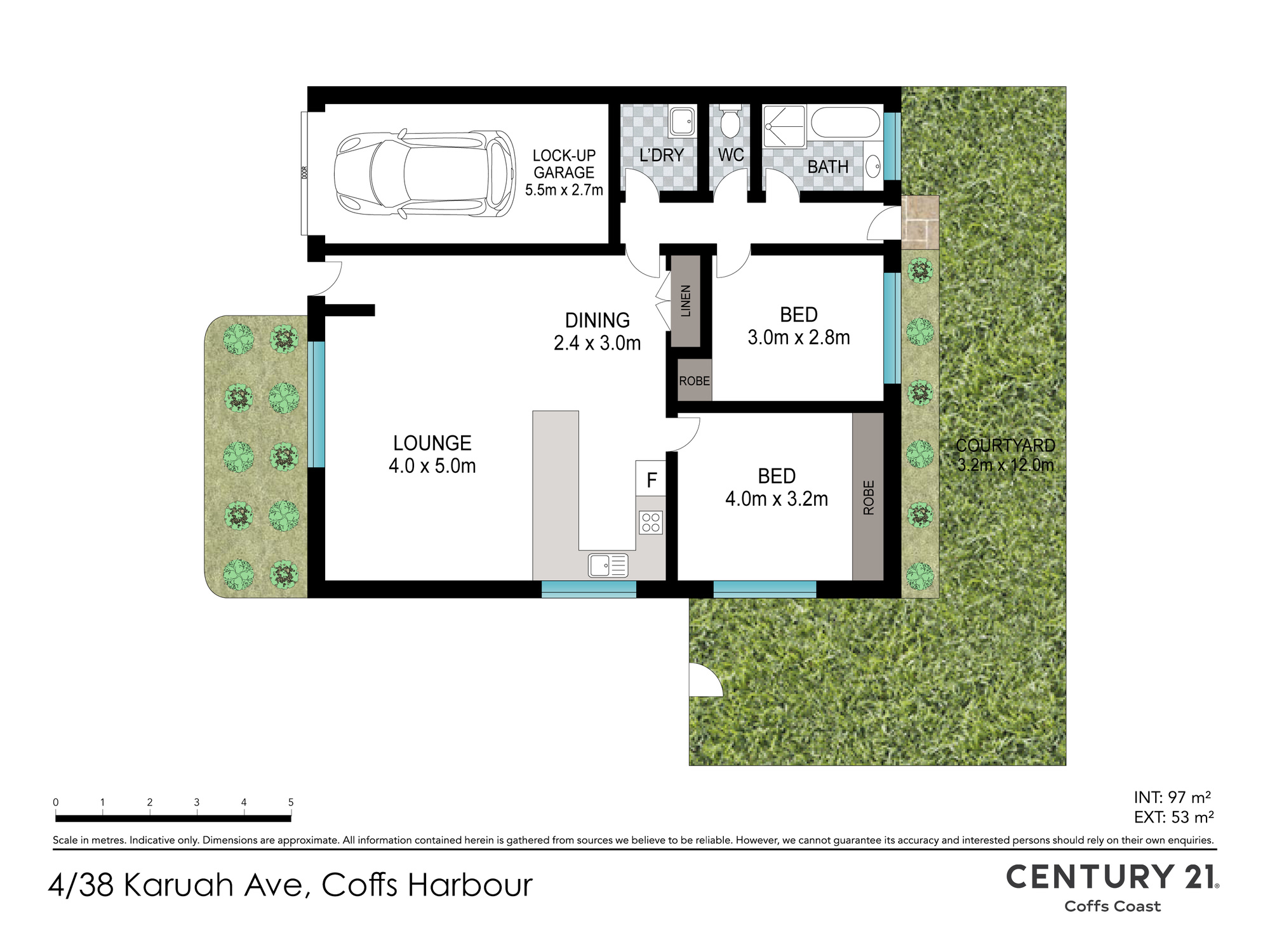 Disclaimer: While all care has been taken to ensure the accuracy of this information, Century 21 Coffs Coast provides no warranty regarding its accuracy and recommends that interested parties conduct their own inquiries. All measurements, figures, and descriptions are provided as a guide only and should not be relied upon as a substitute for legal, financial, or real estate advice. Any interested persons should rely on their own investigations to verify the information contained herein.
